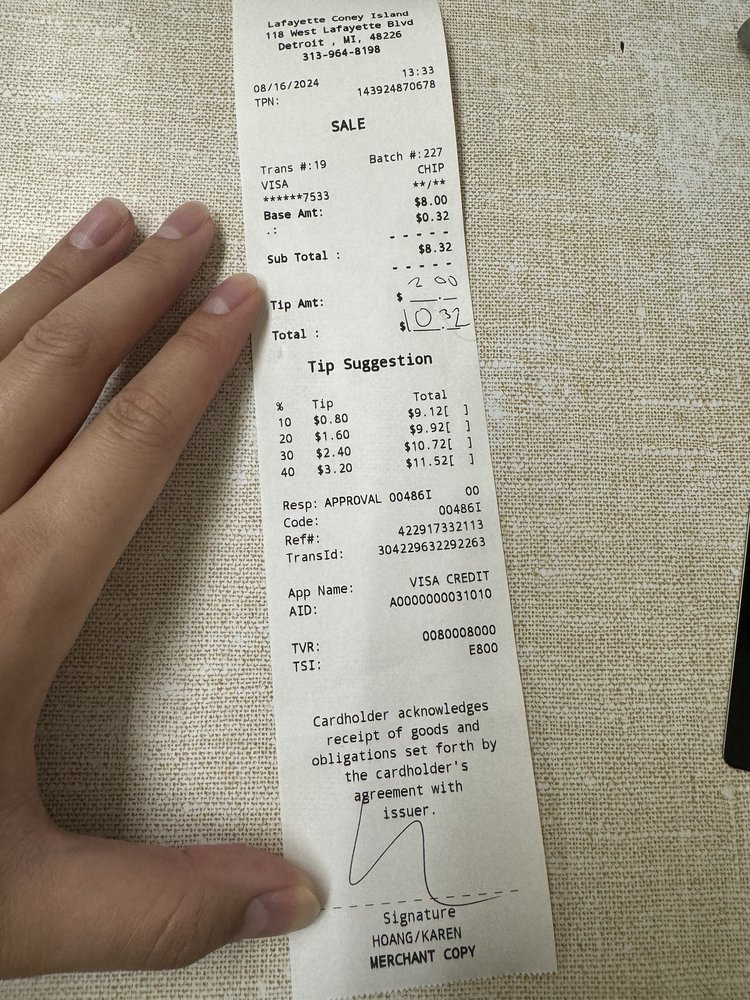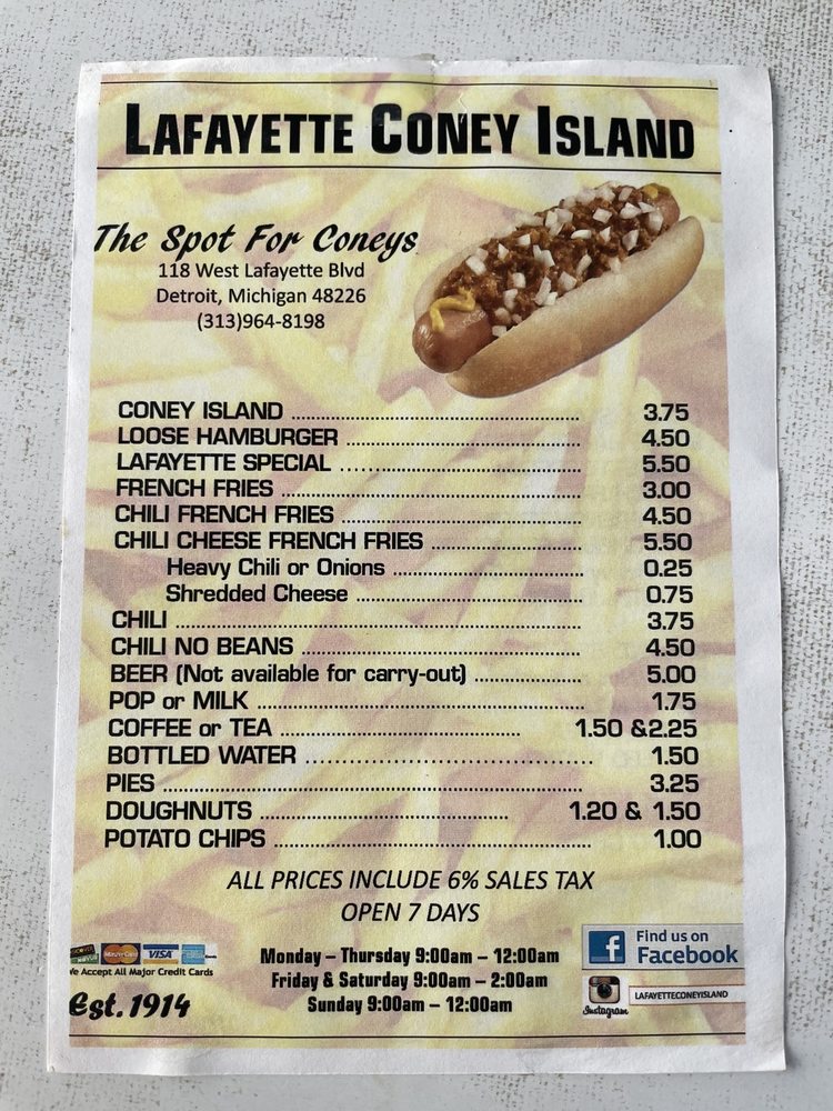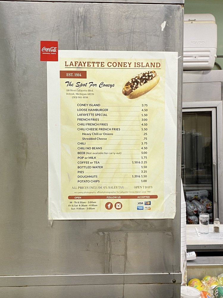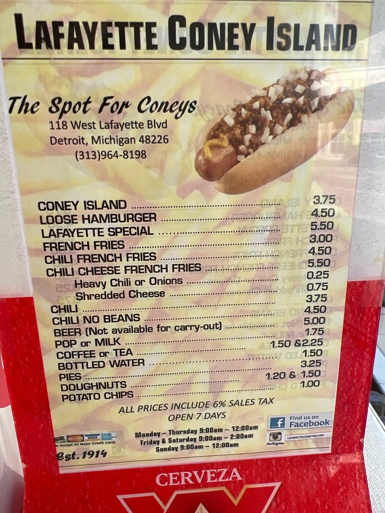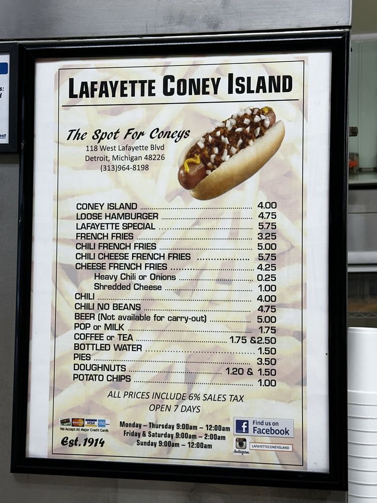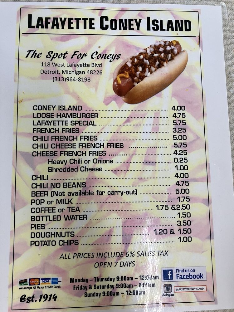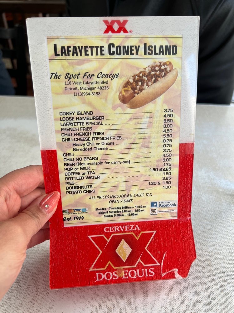 Lafayette Coney Island, located in Detroit, MI, is a nostalgic hotspot known for its classic hot dogs. This divey spot offers a range of amenities, from takeout and delivery to outdoor seating and catering services. Customers rave about the authenticity and quick service, with menu highlights like perfectly cooked hot dogs with soft buns and flavorful toppings. The chili cheese fries are a crowd favorite, always fresh and gooey. Despite being a small establishment, Lafayette Coney Island makes efficient use of space with ample seating options. Whether you're a longtime fan or a first-time visitor, this spot promises a taste of tradition and a welcoming atmosphere to enjoy a delicious meal.